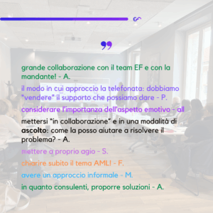 La parte finale dell’incontro è stata dedicata al confronto aperto: i consulenti e le consulenti hanno condiviso a loro volta esperienze, strategie e buone pratiche sperimentate sul campo, in un dialogo reciproco che ha arricchito il bagaglio esperienziale del team e dei singoli professionisti.